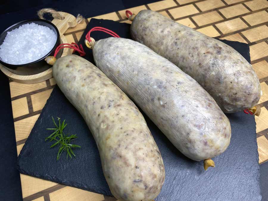 INGREDIENTES: Carne de cerdo, lengua de cerdo, huevo, tripa natural y especies.