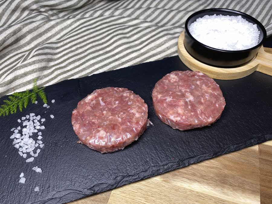 Mini hamburguesa de cerdo. Elaborada artesanalmente.