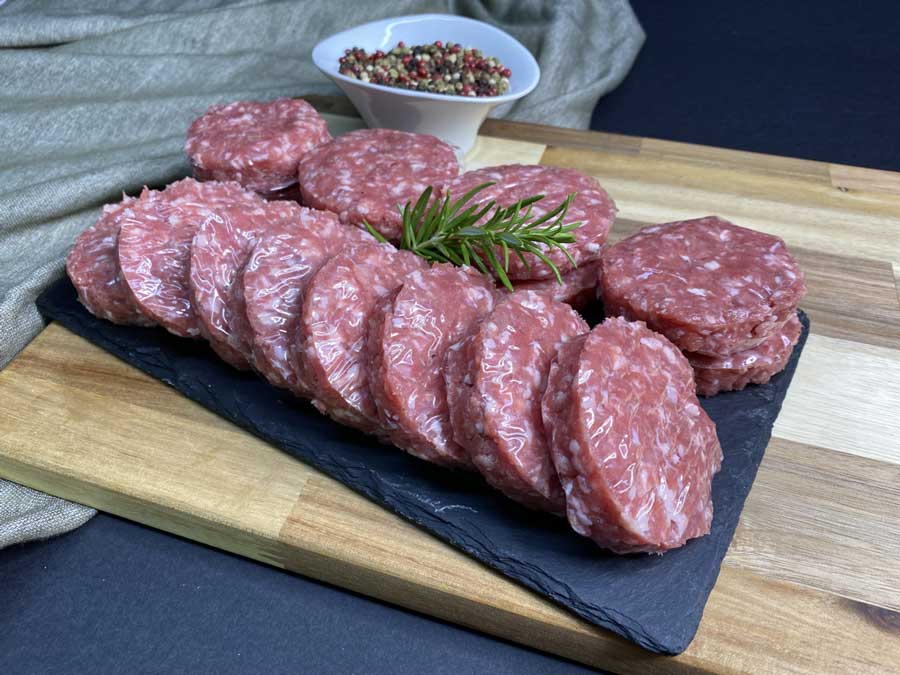 Mini hamburguesas de cordero. Elaborado artesanalmente. Cordero de proximidad de ganaderos de la comarca de la Noguera.
