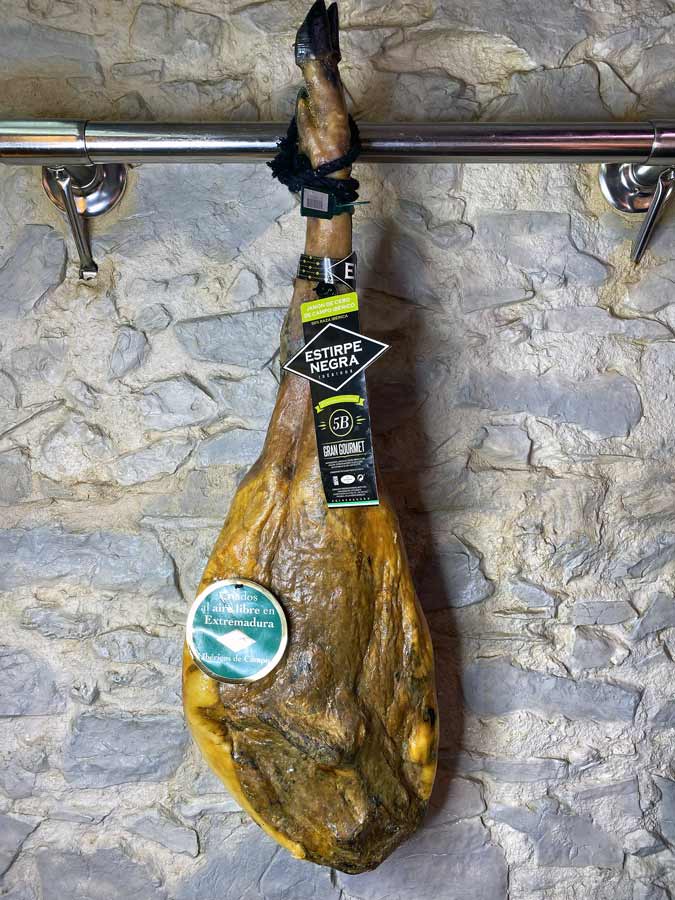 Jamón de cebo de campo ibérico, cerdo criado al aire libre en Extremadura. 50% raza ibérica. Extirpe negra.