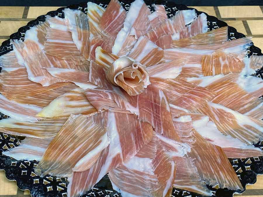 Jamón País cortado a mano. Jamón de Extremadura, genética Duroc. Gran Reserva, más de 15 meses de curación.